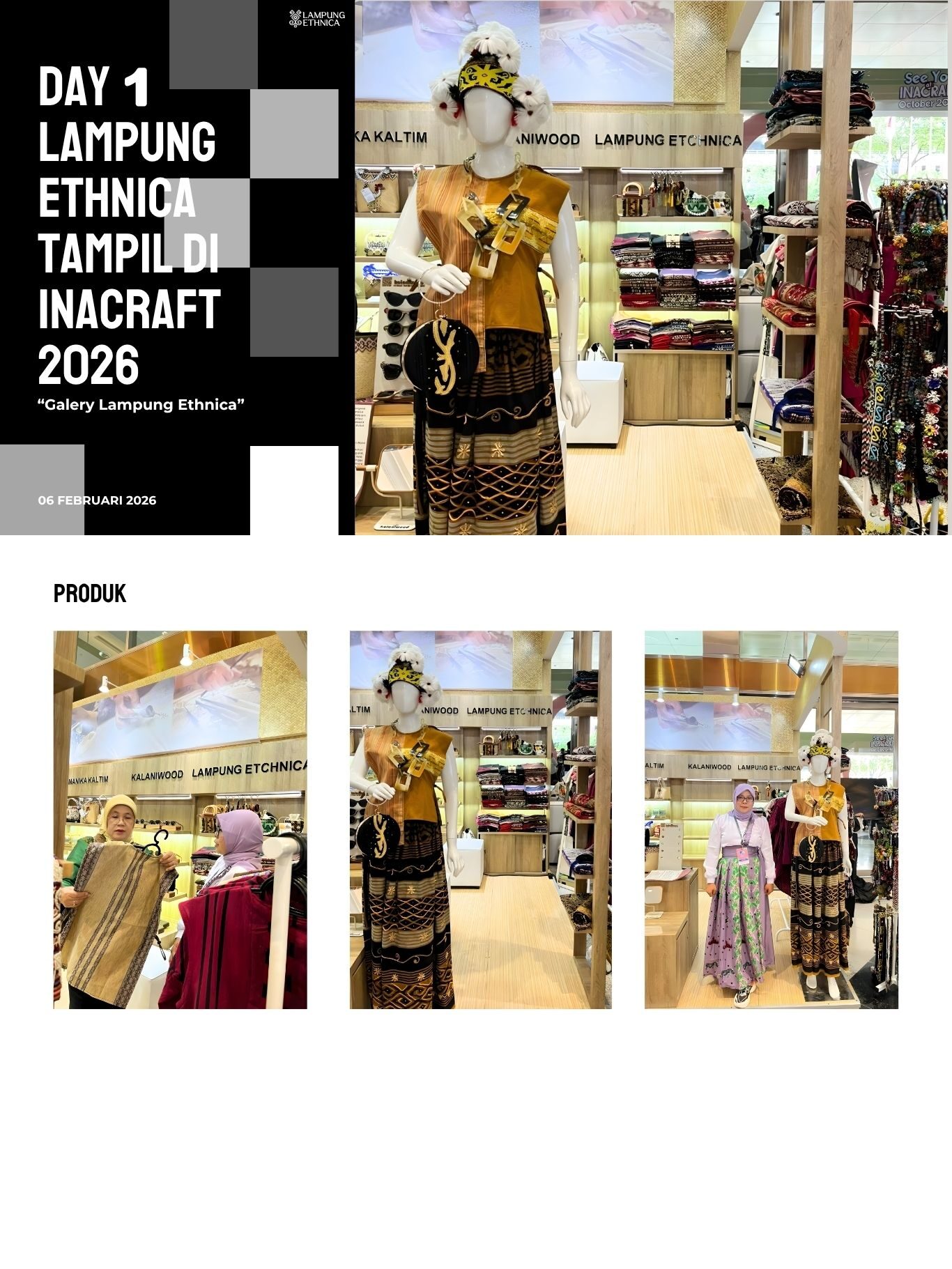 Pada hari Rabu, 04 Februari 2026, bertempat di Galeri Lampung Ethnica, telah berlangsung rangkaian kegiatan Day 1 Lampung Ethnica tampil di INACRAFT 2026. Hari pertama ini menjadi momentum awal keikutsertaan Lampung Ethnica dalam ajang pameran kerajinan dan produk kreatif berskala nasional, INACRAFT 2026.