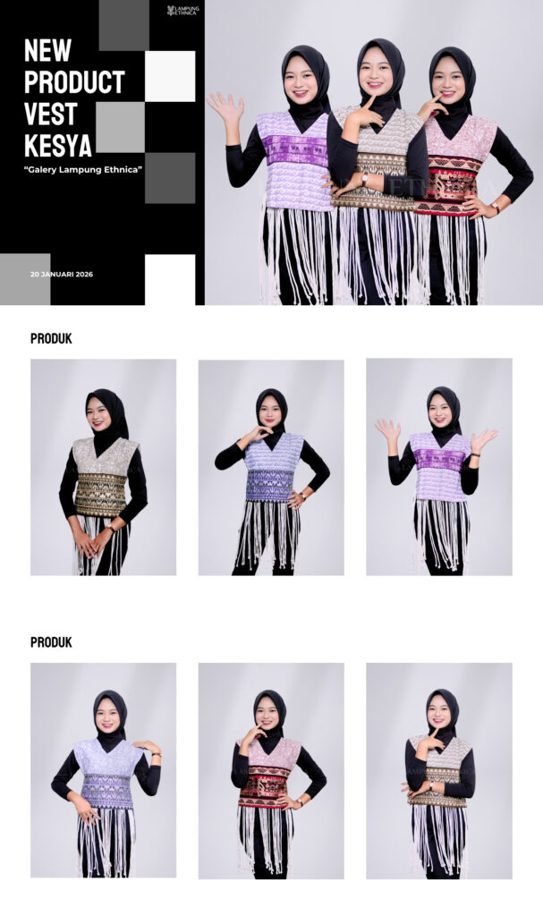 Pada hari Selasa, 20 Februari 2026, bertempat di Galeri Lampung Ethnica, telah dilaksanakan kegiatan yang menampilkan koleksi busana Kesya Vest sebagai bagian dari inovasi fashion etnik modern berbasis wastra tapis Lampung.